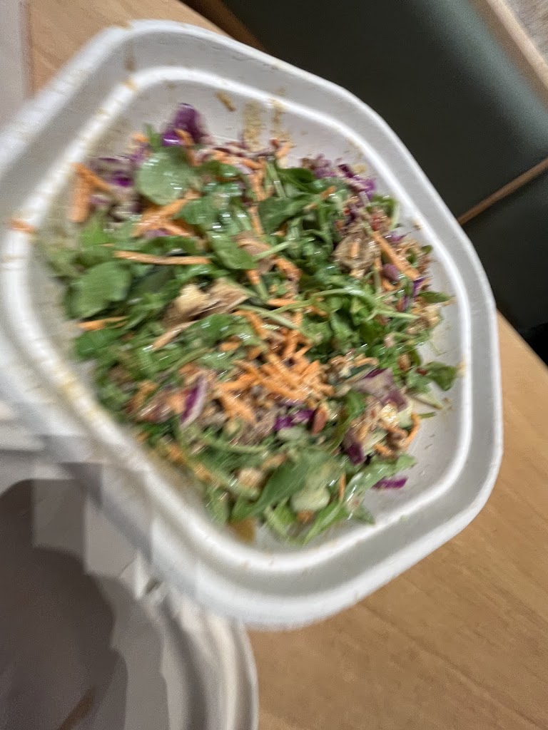 …but after a few more forkfuls, I saw more and more discolored arugula and got really confused because some of them were clearly gross, like the staff would have visually identify the leaves’ browning tips and slimey bits, there had to be a smell when they opened the container.