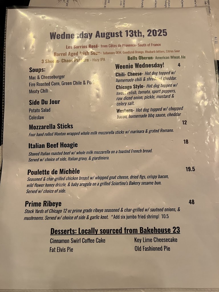 Had a great light meal. I had the Chicago-style hotdogs, and my partner had the French Dip, which was a big sandwich with a side salad.
