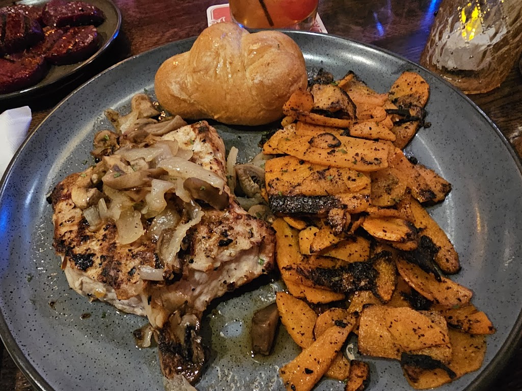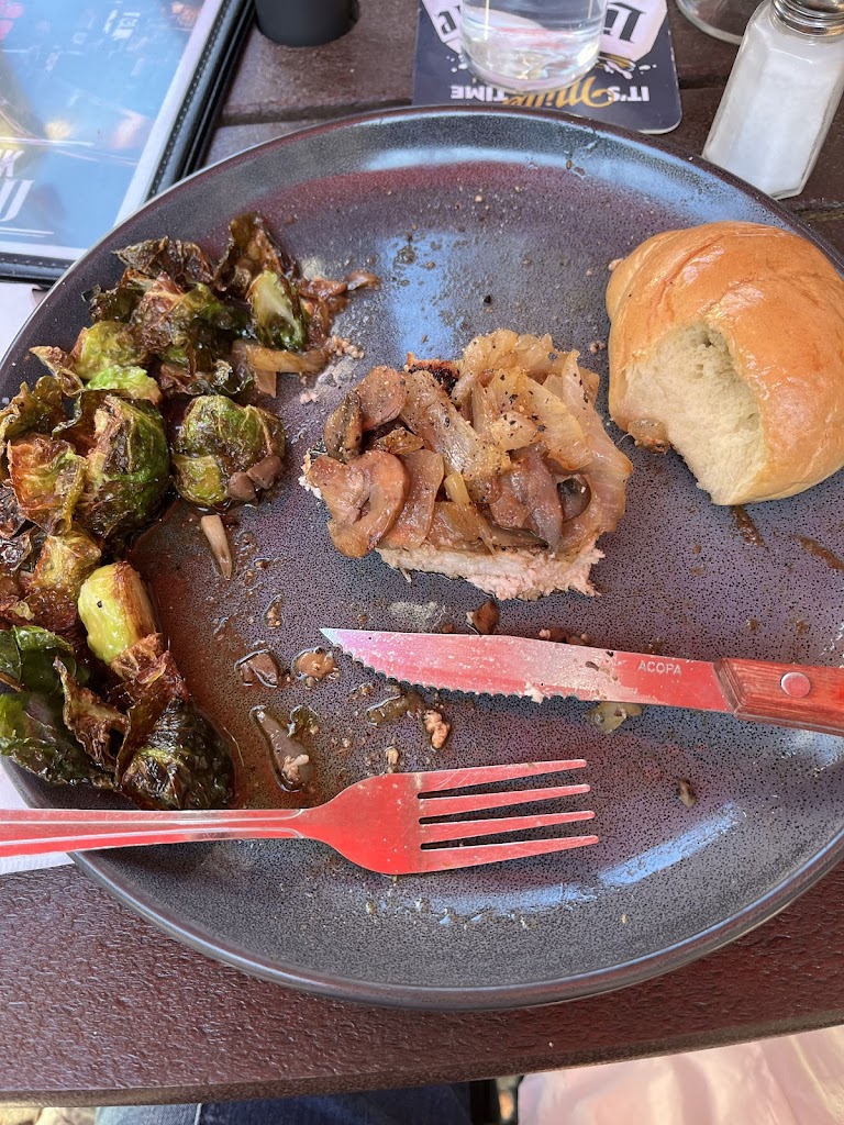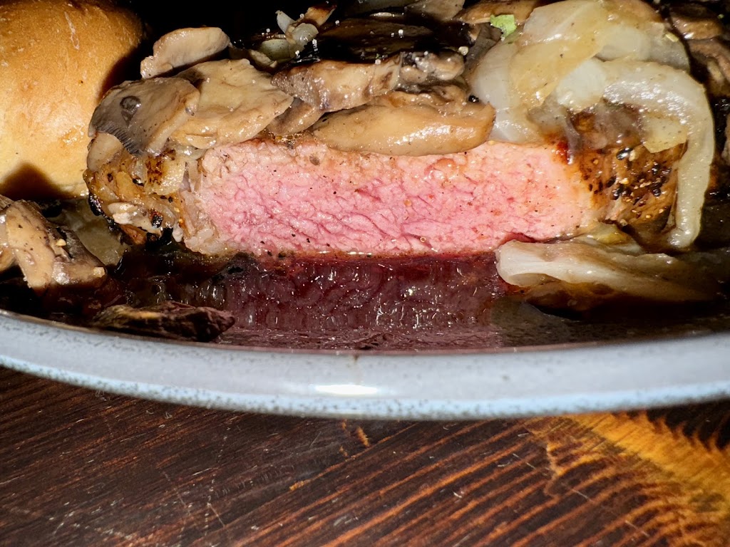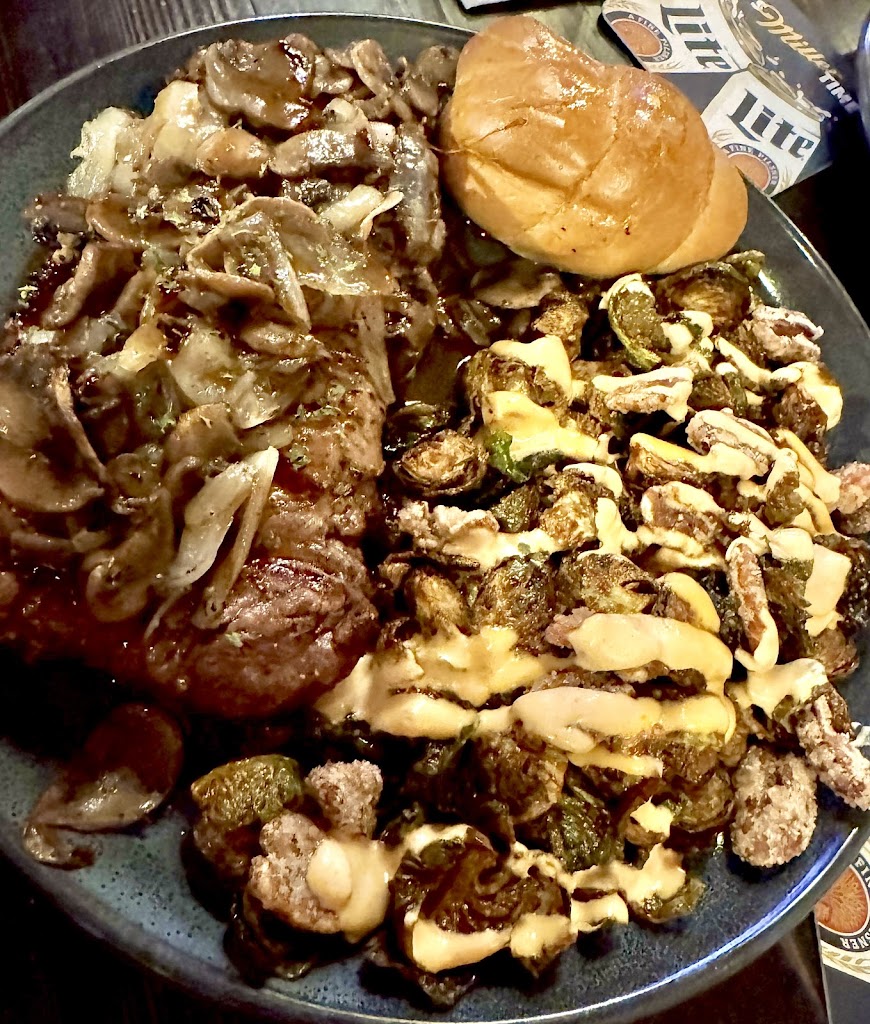 My husband ordered the New York strip (medium rare) and brussel sprouts. This is the first time any restaurant has ever served his steak the exact way it was ordered. I ordered the pork chop with brussel sprouts as well. Each were perfectly smothered in onions and mushroom and the brussel sprouts were to die for! I wasn’t going to eat the bun but it was too good to waste. 😂 Highly recommend!! 😋