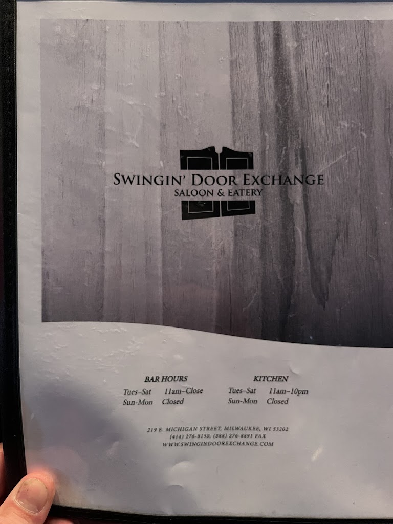 In Milwaukee for business and looking for a quick bite, we stumbled upon Swingin' Door Exchange — what a great find! It was so good, we went back again the next day before heading to the airport. Packed at lunchtime, it’s clearly a local favorite with a great vibe. Everyone was friendly and working hard to keep things moving. The burgers and chicken were delicious, but the real stars were the brussels sprouts and beet side dishes — absolutely mouthwatering. This is officially my go-to spot whenever I’m in town!