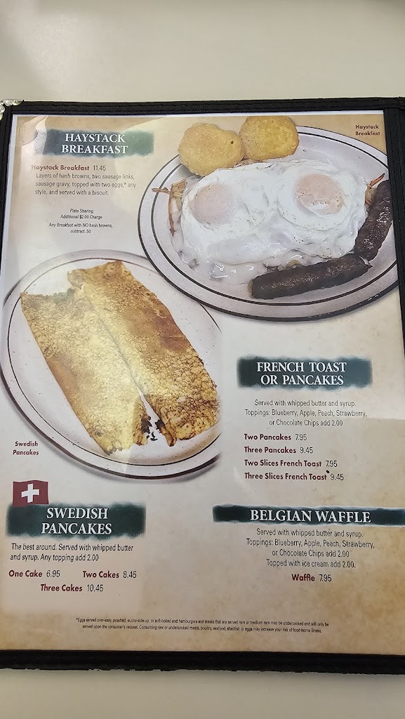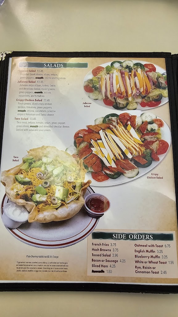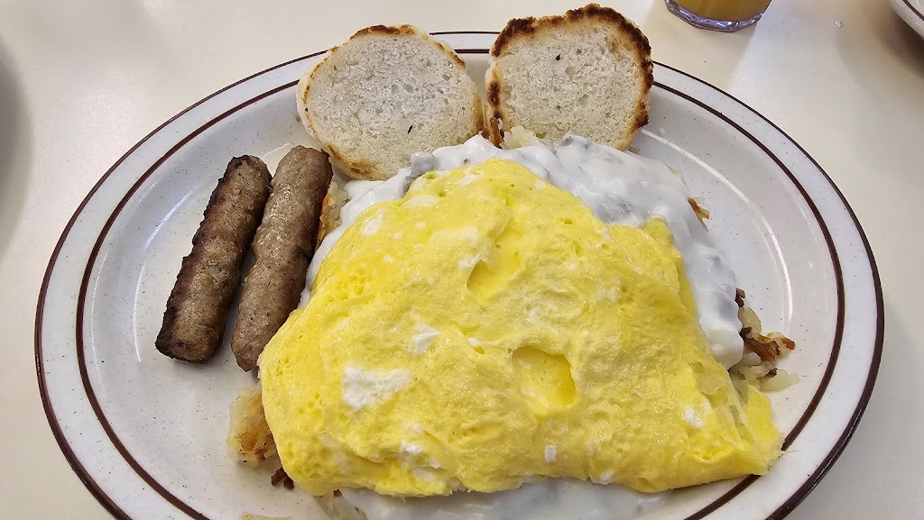 We had an amazing waitress, I wish I could remember her name! I do remember she also had a second job doing caregiver. She absolutely loved her jobs and the customers! The food was great, portion size was awesome, good coffee and excellent waitress! Makes for a wonderful dining experience when trying a new place!