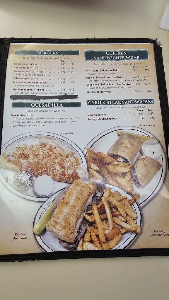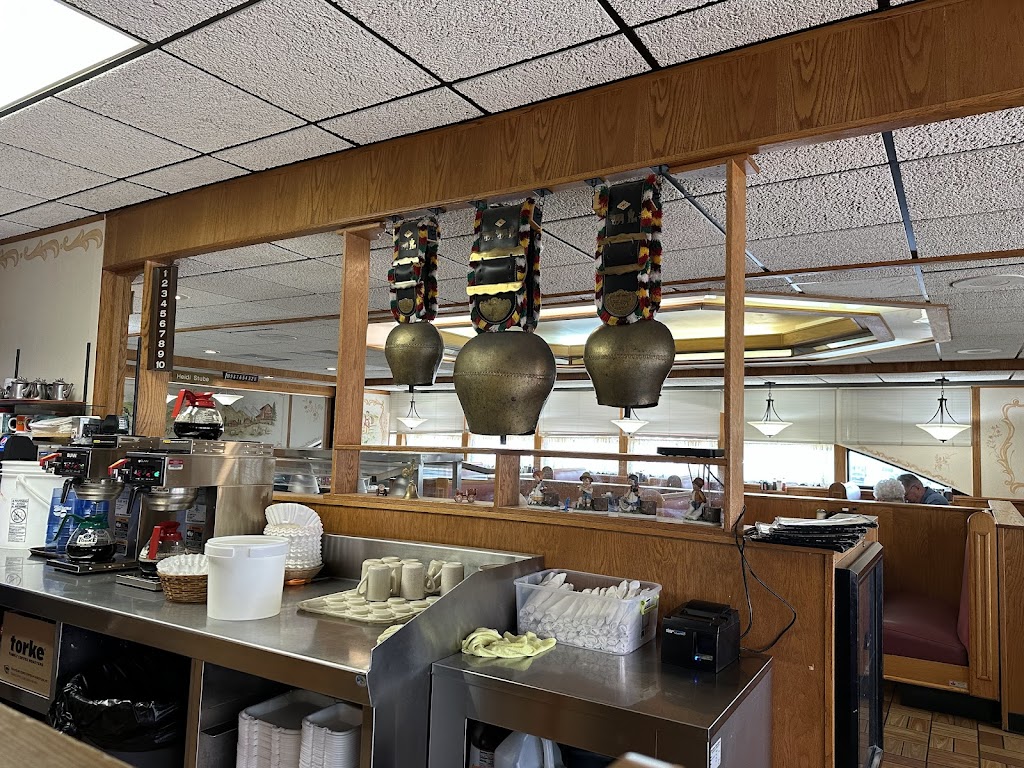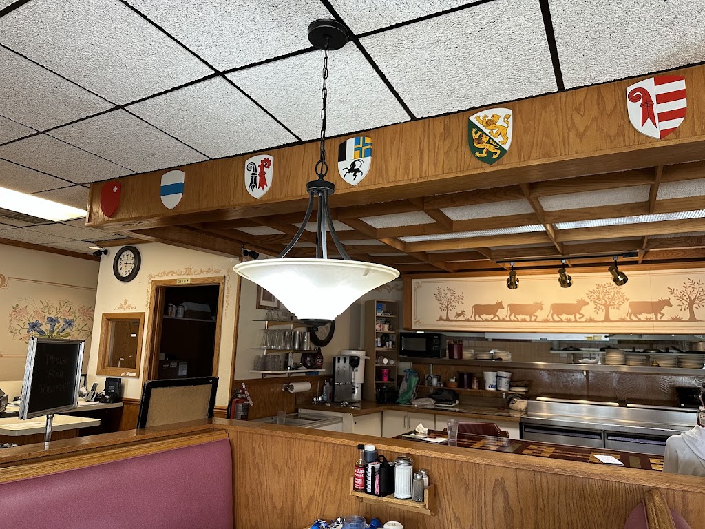 Family restaurant with typical American breakfast and lunch dining options. Restaurant features Swiss decorations and murals, but not Swiss cuisine.