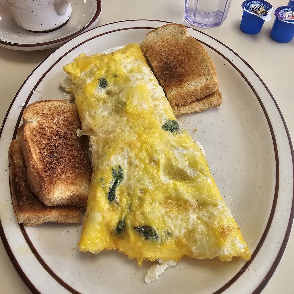 I was here visiting friends, they recommended for me to go here. The staff was welcoming and friendly. The coffee was delicious. The price was great for what I got. The atmosphere was that of what one expects from a family restaurant. The only downside and it was just a minor one was that the spinach and feta omelet had huge chunks of feta in it and felt like there was not as much spinach as I would of expected for a spinach and feta omelet. But it was still delicious even with the small complaint. I would highly recommend stopping here if your driving through or visiting.