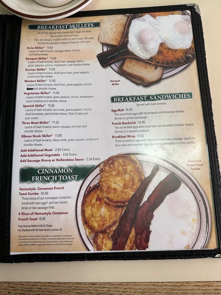 Fantastic place to eat! I had the swiss skillet and it was so tasty! Charming little place with excellent service and food.