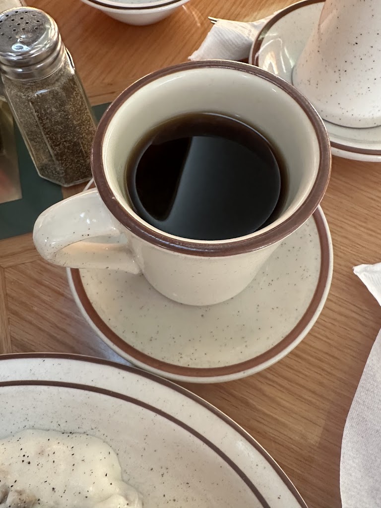Biscuits were good and looked golden brown like a hungry jack biscuit. So yes that’s nice. The gravy was (extremely thick) so to me not good. I think gravy should move (gently) & this was very thick. The hash browns were excellent! Crunchy/soft golden brown and yellow and a nice fork full. The coffee was hot silky black and not to strong but bold flavor. I was there 35 minutes and I received 4 cups of coffee. My bill was $16.67 before tip.
