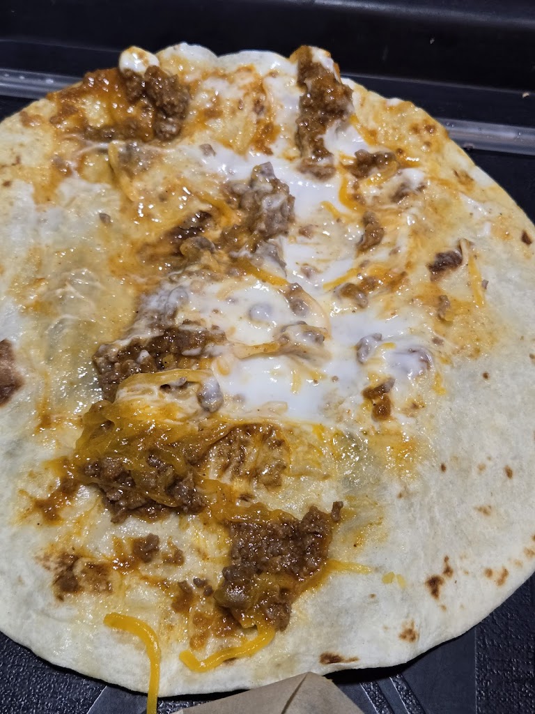 First some kids left their bikes right in front of the door so it was a puzzle to get in, then they put no sauce on any of the items that were supposed to have sauce on them, not even nacho cheese sauce on the crunch wrap, and my Gordita crunch was probably the most messed up item I’ve gotten from tb, couldn’t even simply put the stuff that’s supposed to be in it actually in the taco, then the bag was filled with like a quarter of a pound of cheese and lettuce, definitely a bad Taco Bell