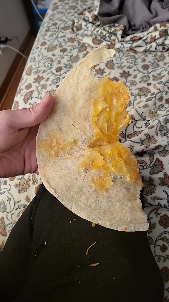 Literally BUGS in the cheese of our tacos. UNREAL. Didn’t even respond to me in the lobby after I loudly let them know that I needed help with our order that they were making as there was a mistake. DISGUSTING this is a picture of one my girlfriend spit out