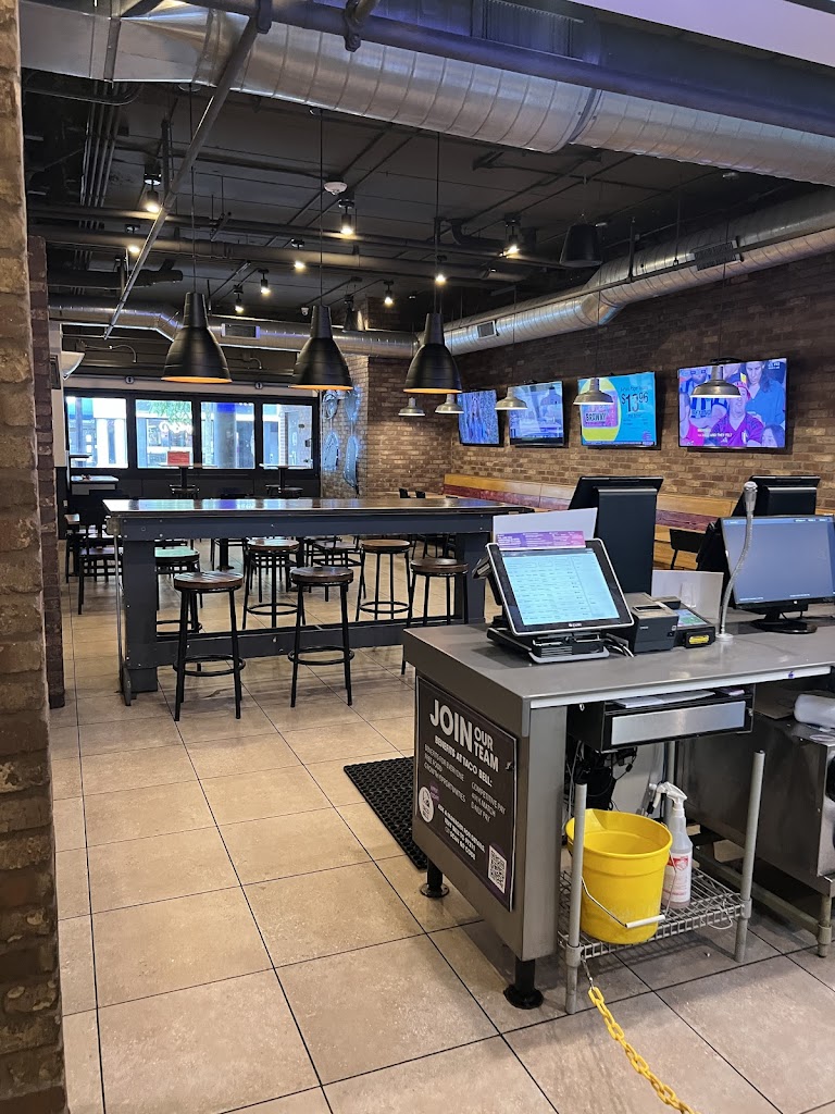 Appeared to have fairly new staff. Watching kitchen staff prepare and deliver food to customers was like watching chimps at the zoo. Don't get me wrong, they were friendly and courteous but when you look like you might be stoned out of your head and waiting on people, it's hard not to appear like...nevermind, the place is alright. It's state street! Update 8/28 3pm: Place needs staff! Also, handicap door mechanism does not work.