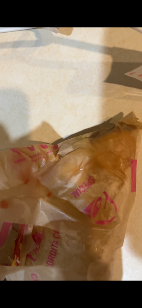 I haven't eaten out for a long time thought about Taco Bell and my eyes were too big for my stomach LOL but it was good!! I didn't get to eat it all I took it home to eat later! 😂
