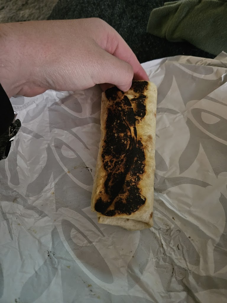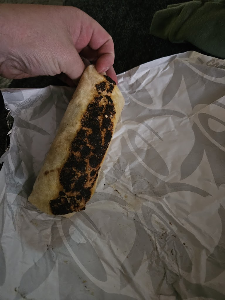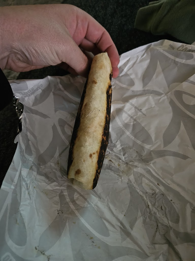 Somthing is always messed up i order a catina chicken burrito I get chicken enchilada burrito the other day. Now today I asked for a cantina chicken burrito AGAIN now Its correct food but its burnt on both sides and smells terrible no point in going back cause it's just more mistakes and me wasting gas since I don't receive anything for my wasted time