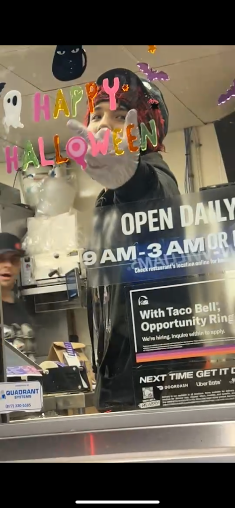 So we pulled in, sign says open dining, seen two people sitting almost on top of each other in a booth, my wife goes to go in and doors were locked, the guy that was with his honey in a booth came out basically said drive through only, no Taco Bell uniform wasn’t sure if he was an employee, then he runs to kitchen and starts doing pull ups on a shelf while we were watching this bizarre display of employee professionalism we looked at each other and decided for sure it would be to much work for whomever the employee is will never return to this establishment.