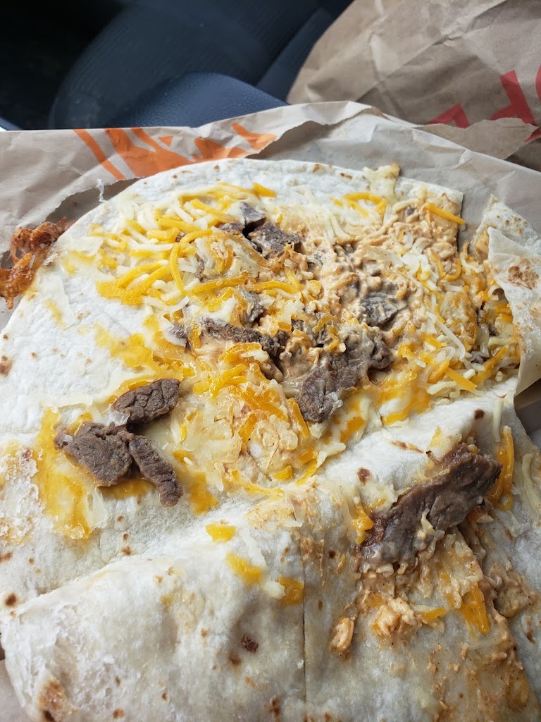 I went drive-thru and asked the attendant what they recommend to eat. The guys working tonight did an *amazing* job with the steak fajita chalupas. They put a three cheese sauce on top and some other customizations they recommended. I have to say, I'm downright impressed, those chalupas really hit the spot.