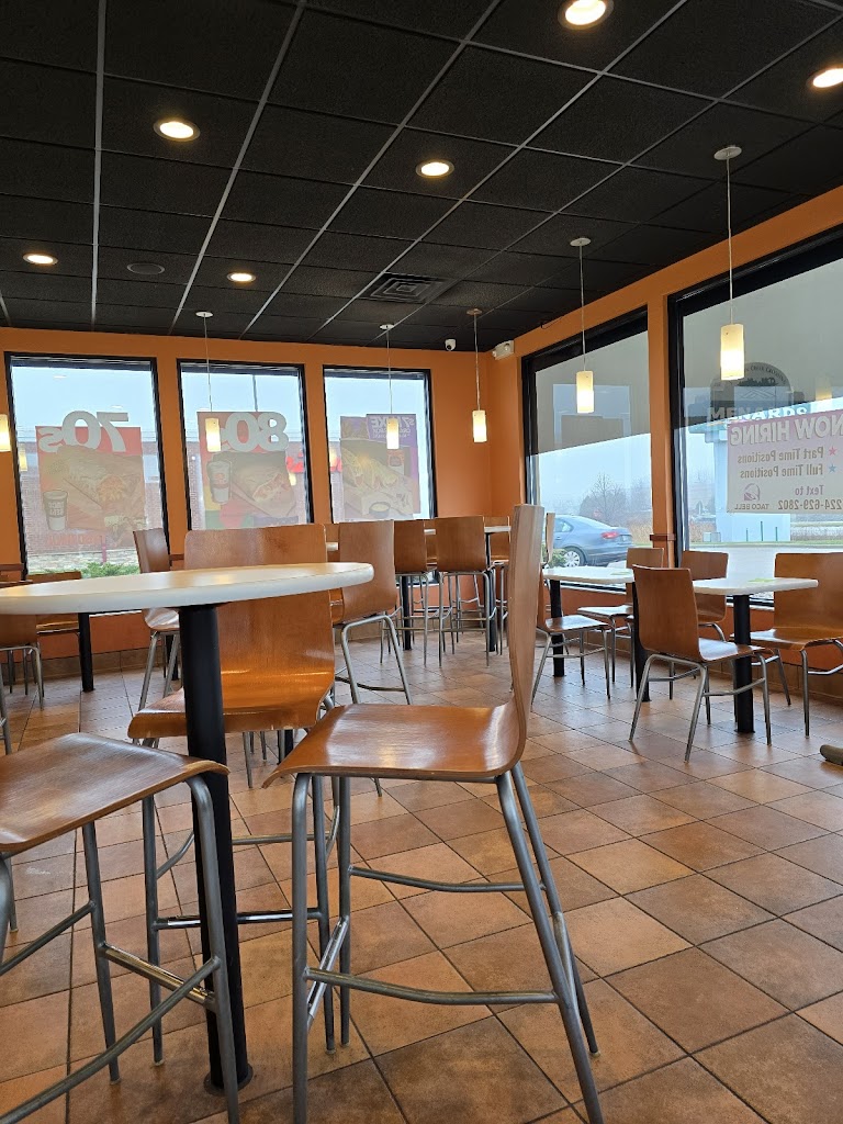 There were only 2 tables that were clean in the restaurant and it was not busy, even the drive through. I let them know the tables were all dirty when we were leaving and a young man came out and started to clean as we walked out. I ordered a chicken burrito and quesadilla and I couldn’t tell if the was even any chicken in it. If there was all I could taste was beans. In the quesadilla I had 6 pieces of chicken. 1 on each end slice and 4 in the middle. At least it had quite a bit of cheese. I did enjoy the Raspberry Freese. I have had trouble there in the past don’t know why I went back.