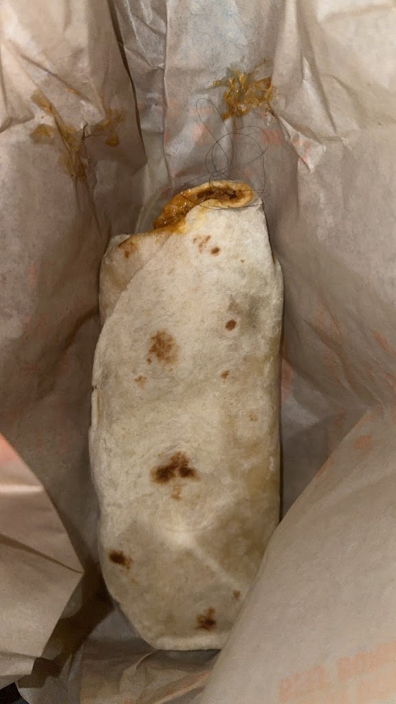 Just opened up my food and unwrapped my burrito and there was a nice big hair on it. This is nasty.