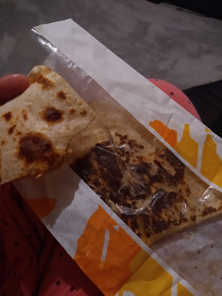 Damn chicken quesadilla was cold, cheese wasn’t even melted, they pretty much just put shredded cheese and chicken in a shell, folded it in half and called it a number 7. Didn’t even cook it or heat it up or anything. 5-25-24
