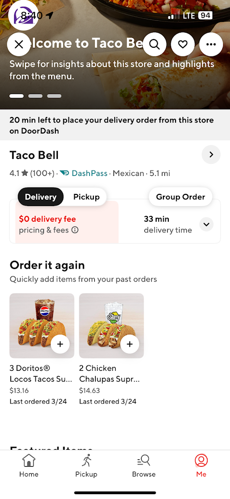 Very very disappointed with this store and will never order on door dash from this location again! This is not chicken which cost extra money over beef and no tomatoes on any of my 4 Doritos loco tacos which also cost extra money vs no supreme tacos!