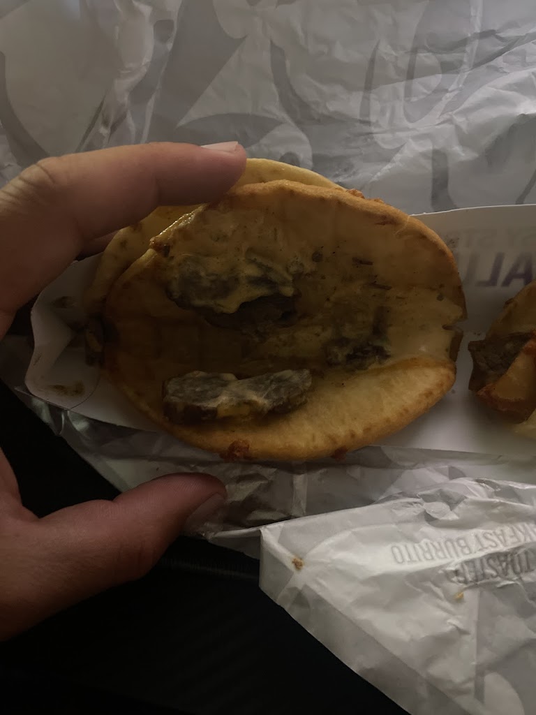 It was taco bell as always, but I feel like I should note it was tiny portions of every ingredient on my meal. Won't be going back there. Either east side locations load them up and friendlier service.