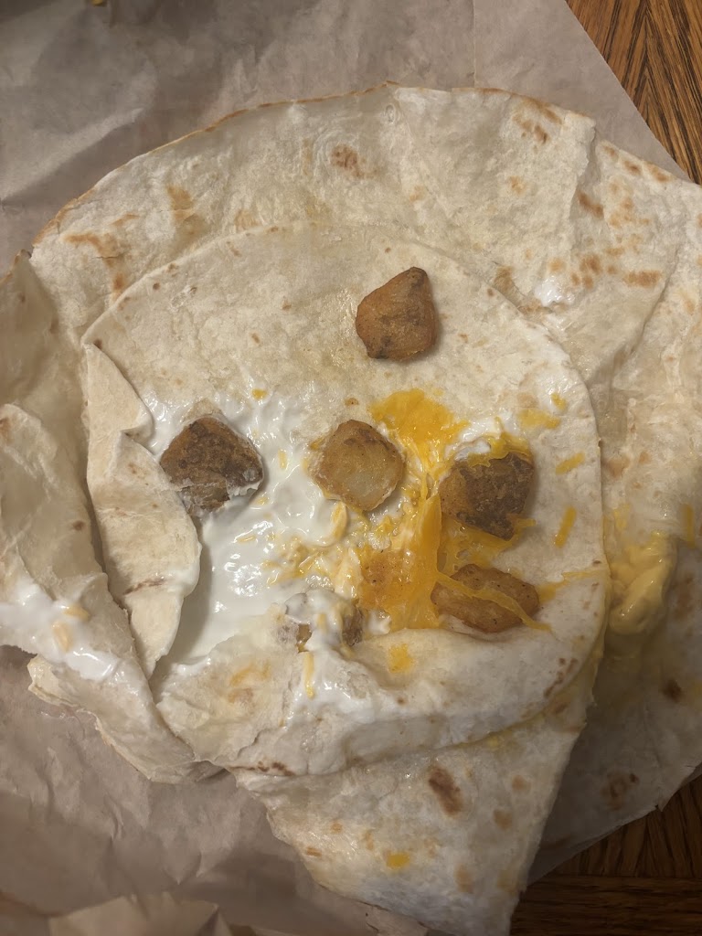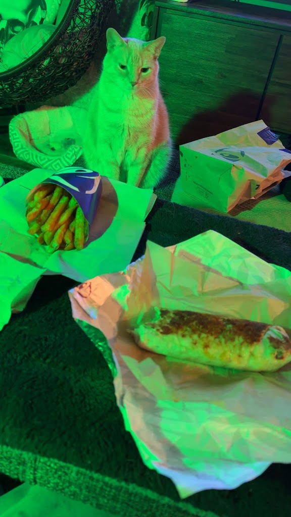 I love the beef grilled cheese burrito and nacho fries. My cat loves the nacho cheese, he licks the cup clean after I’m done with my fries.