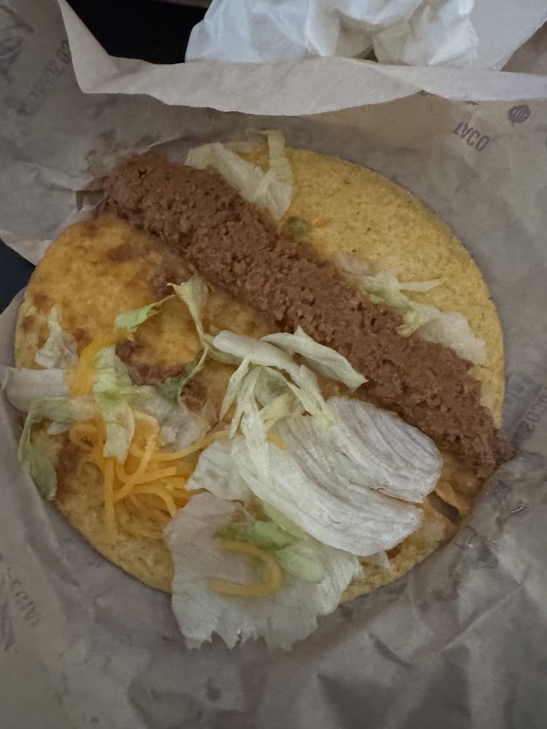 Ordered a #1 Taco Supreme ….No sour cream…no tomatoes…instead of chopped lettuce I was presented with lettuce leaves 🥬. This Taco Bell does not miss represent itself one bit. Always true to its true colors, awful & nasty. Unfortunately I would not recommend this dump . Oh yeah and my large soda was filled with ice and almost no soda !!!! What a wonderful Place to spend my hard earned money at ;(