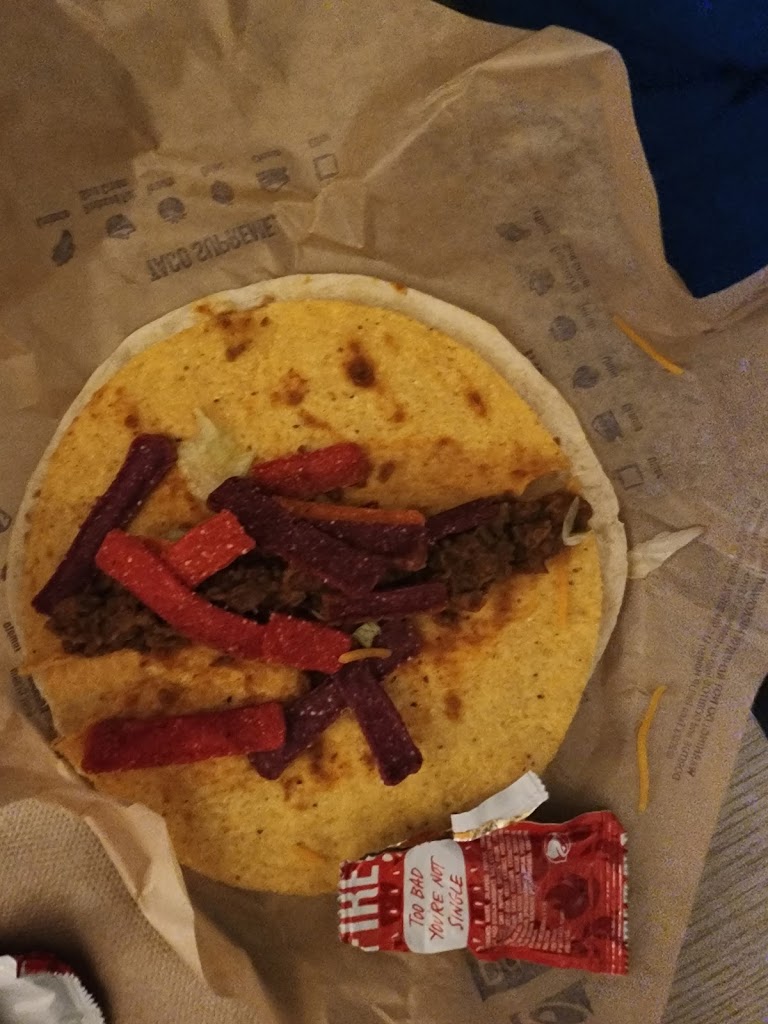 Who doesn’t love Taco Bell? It’s fun it’s fast. It’s easy if you’re on the go you can just get something quick and be on your way or you can relax and eat inside.