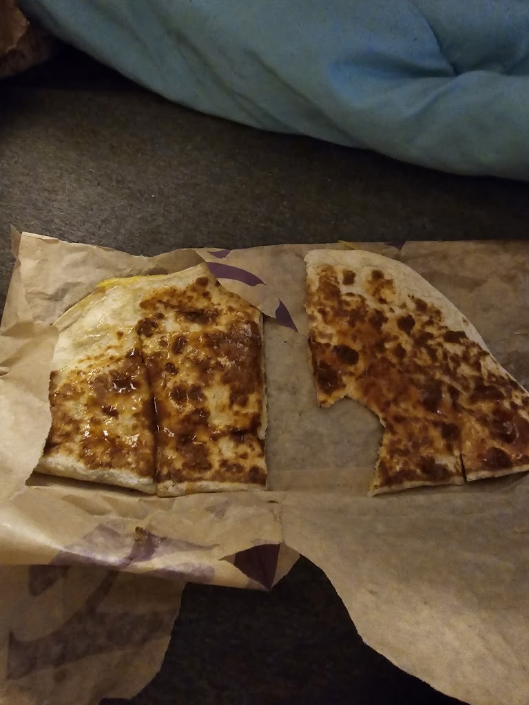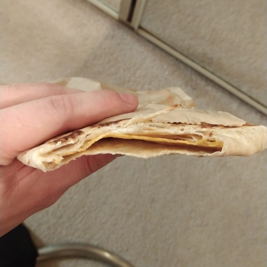 Thought I was walking on flypaper when I walked in, but the floor is always sticky. I must've forgot. Taco was fine, but a little light. Chicken quesadilla was fine, but also a little light. The chicken "strips" were runts, may as well have been called nuggets. Totally not worth it for the chicken strips. $16 in food and I'm still hungry, and now, as I'm leaving, I don't want to set my feet down inside of my car because of how sticky the soles of my shoes are.
