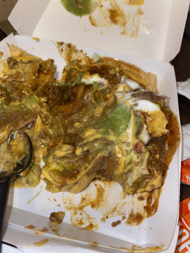 The leather long coat Mexican guy at the window was horrible. Rushing me and yelling through the intercom. We waited 10-15 min in drive thru just to be rushed and i asked for hot sauce which wasn’t provided and gave me 5 each for a $30 purchase. He Ruined my appetite. Do better. the nachos were a mess and my fiesta potatoes had sooo much cheese.