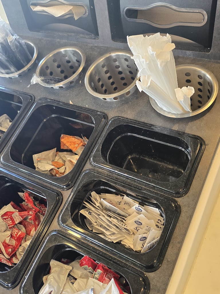 The food was standard Taco Bell which is what we wanted. One of the touchscreens was down and a line formed inside. A staff member came to take orders and move everyone through. Appreciate that! We stayed inside to eat and every table had cheese on it. Every table.