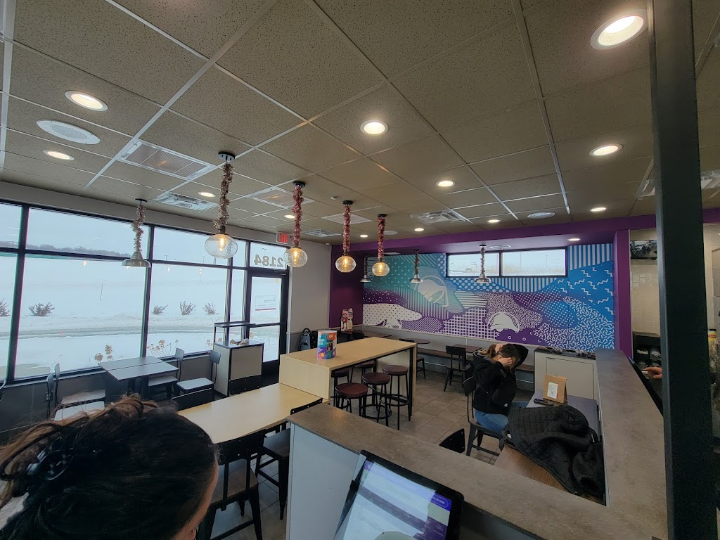 This new store is on par to be just like the taco bell we had mid to late 90s in scf, a dump. Ate here and there was zero sauce in the bins, food all over the floor and tables, and what looked to be at least 5 people in the back laughing and joking around instead of working. Once we got our food we noticed it was very sloppily made and not much ingredients in the items. I'll go to new richmond or hudson instead.