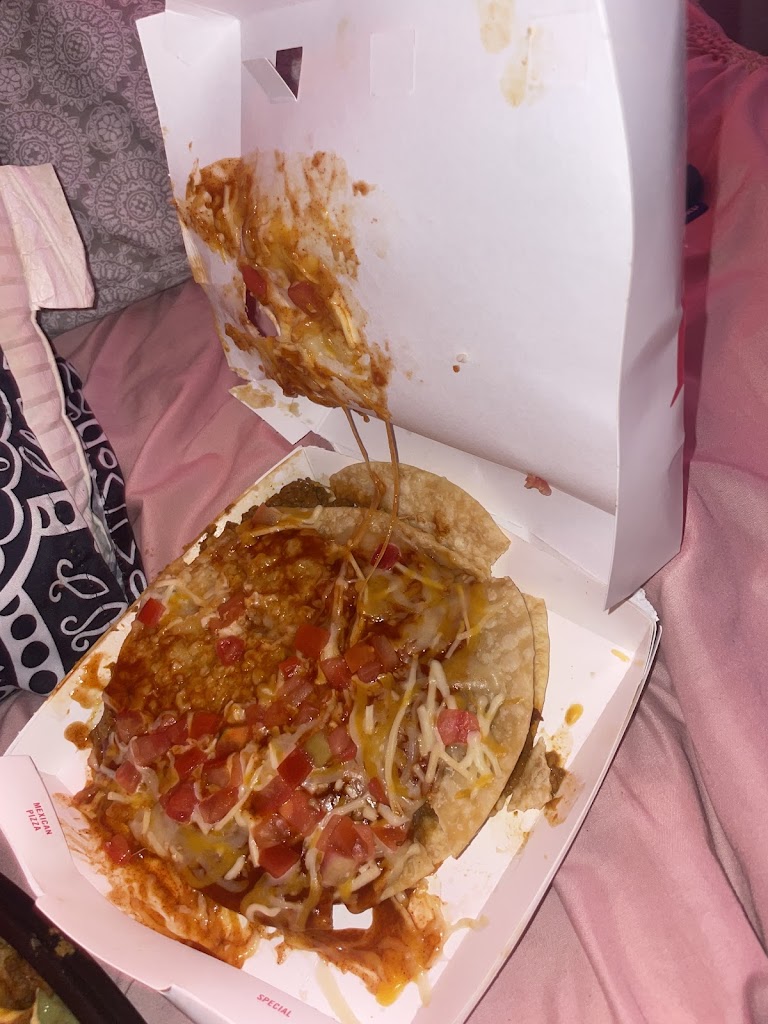 I guess March madness was carried into April. I don't know if they were dribbling the bag or or shooting each individual taco into the bag before handing out the window. Every hardshell taco was still in shape but cracked and crumbled when attempting to pick it up. I had to eat it with a fork when I got home.