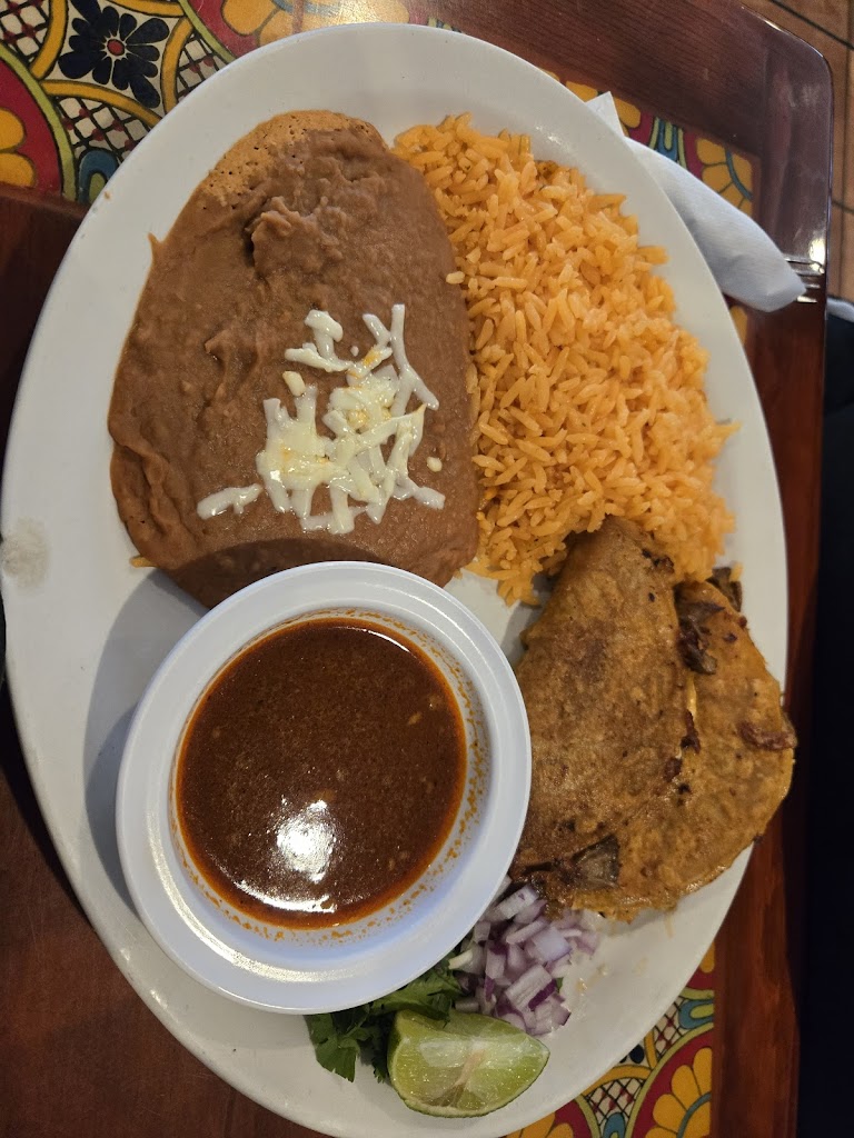 Have been going here for years. Wait staff is quick and responsive. Everything on the menu is delicious, but we usually get the Mexican tacos, steak burrito, or steak tostadas. They also have the best horchata in town! Parking is sometimes tight as it shares the parking lot with the market next door.