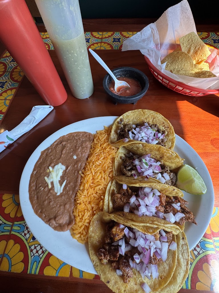 I have gone here for 20+ years. It is still my favorite. I don't like the neighborhood. They never make a mistake on my togo order. I usually only order togo. Once I. A great while I will eat there. I usually order the Mexican tacos. Cilantro and onions! I like the steak tacos.