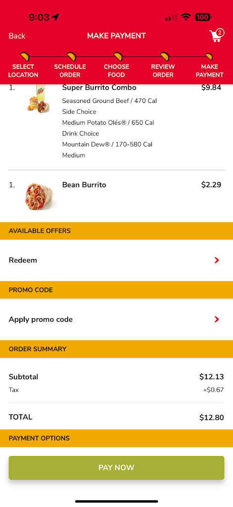 We ordered three $9 meal steals with a kids meal and a Mexican donut bite... The only thing that was good was the potato oles. The donut bites did even fill the container like the picture shows...it's definitely not worthe the almost $5. The guy forgot to give us the 4th soda and ordered and paid. I realized it and said I ordered 4. Then when I checked everything, they didn't put in the medium potato oles I had ordered free with app.