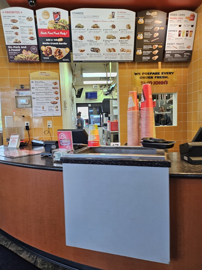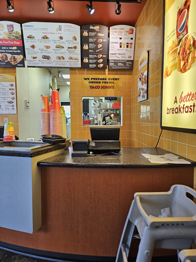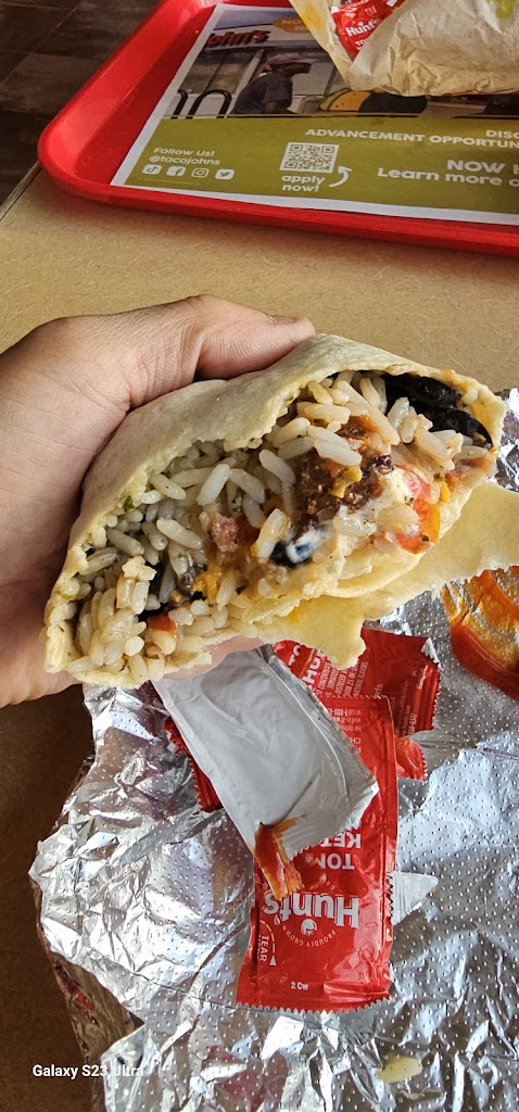 The food is consistently pretty good. Better food than taco bell for sure but more expensive as well. This particular taco johns seems to close just whenever they choose to. I've gone there around 8:30 and had then be closed when their sign says closing time is 10. I've also been there at 930 so it's not just that they haven't updated their sign. If you go I recommend the spicy steak and potato grilled from the value menu!