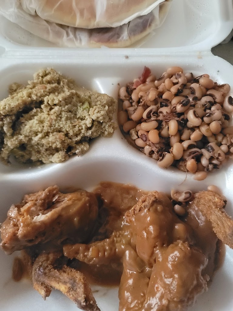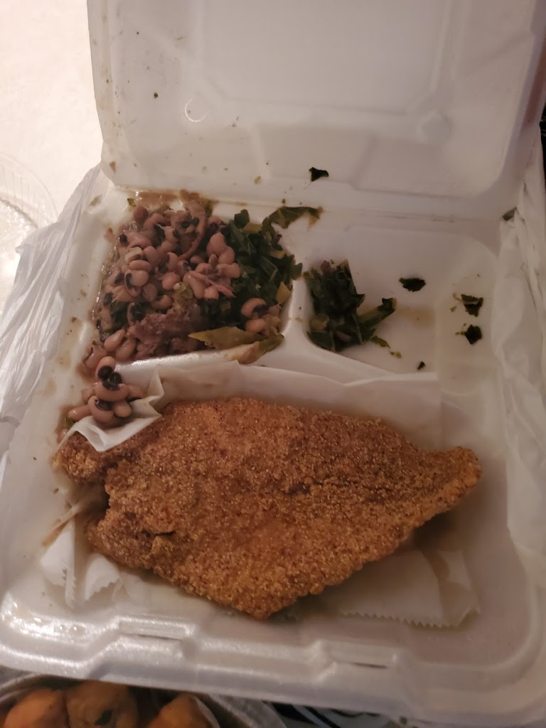 I ordered fried catfish, fried okra, black eyed peas and greens. The food tasted good. I didn't like that it took over an hour for it to be delivered. I live north in Kenosha. When it finally arrived, this obese woman huffed and puffed very slowly up one flight of stairs. She was the delivery person. My food was tossed around in the container and mixed together. I would order here again but only for dine in.