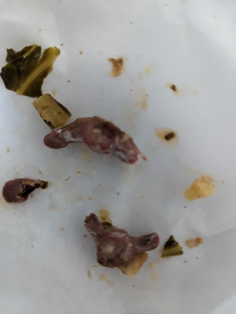 The only reason I am writing a review is because there were two significantly size bones in the soul roll I ordered that I nearly broke my teeth on. I thought it was just a hard piece of pasta from the Mac n cheese so I tried crunching it and had a pain in my jaw.