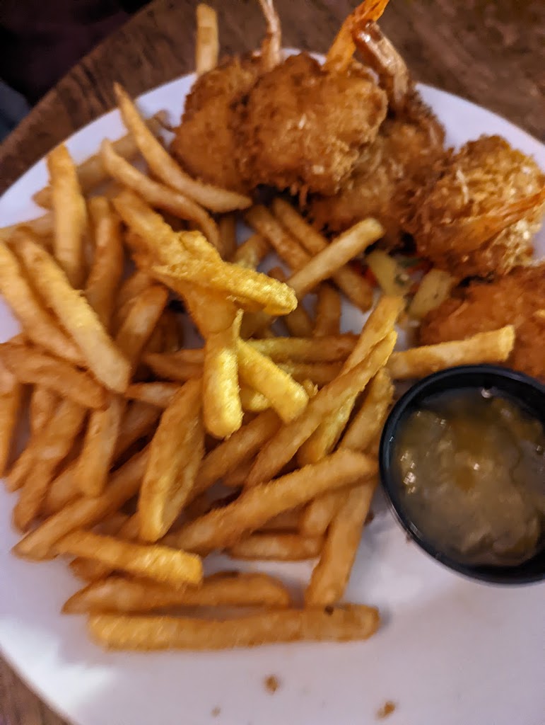 Food was good especially the fries, really liked the setting. Prices were reasonable, our bill was a little higher because we decided to get an appetizer and drinks.