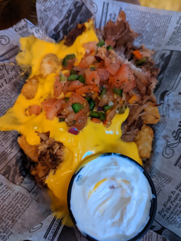 My wife and I came to town to celebrate our 12th anniversary, and we stopped here for a dinner. I enjoyed their muddled bourbon Old Fashioned, a pint of Edmund Fitzgerald Porter, and the Rueben Eggrolls, Loaded Tots, and bacon wrapped jalapeño poppers.