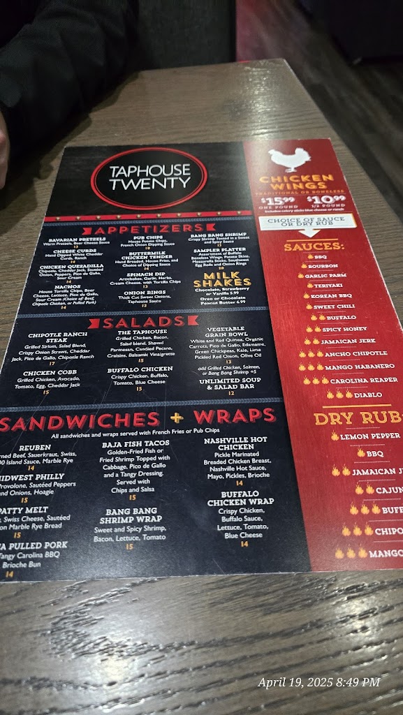 I recently dined at Taphouse 20], and I cannot praise our server, Kim, enough for the outstanding experience! From the moment we arrived, Kim greeted us with a warm smile and an infectious energy and laughter that set the tone for our evening.