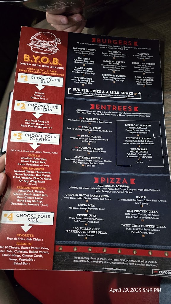 Solid overall experience. Great fries and an interesting prime burger. Good Taphouse salad.