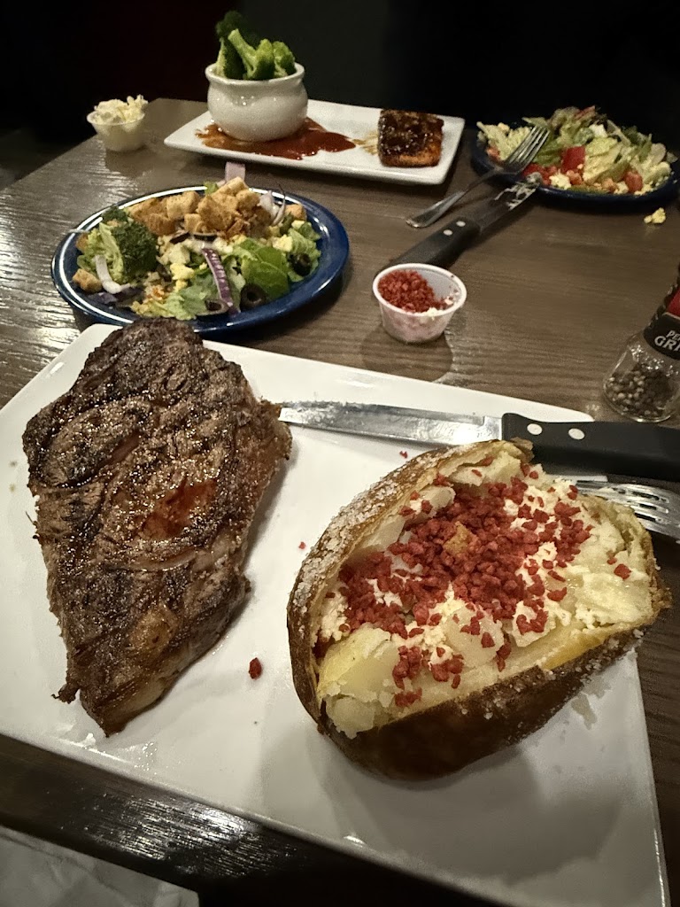 Nice salad bar, extensive local craft beer menu. Steak was seasoned well and cooked to perfection. Service was friendly, prompt but not intrusive.