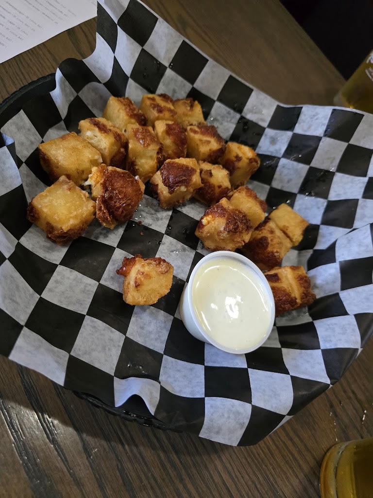 The wings were good but not great. They were crunchy but had very little sauce as if they were rationing and little flavor after the initial bite. The cheese bites were great and I was told the burgers are what you should try.
