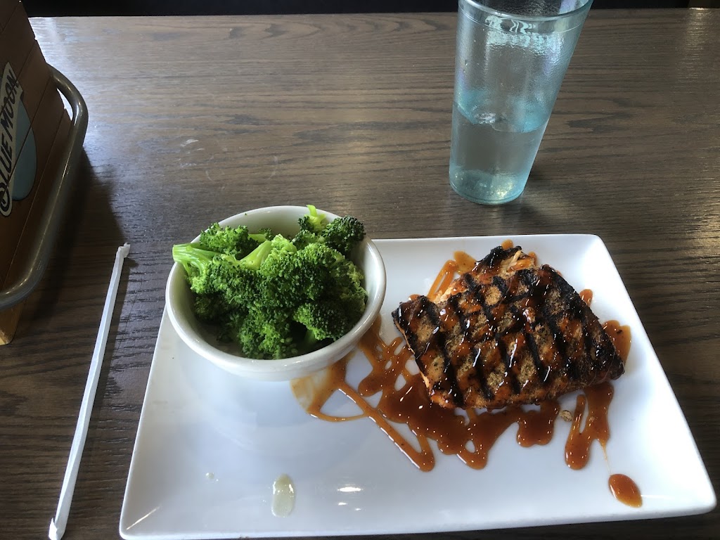 Good food. Tasty salad bar. Salmon was excellent. Great server. Was a little loud, but still a great place to watch the Brewers.