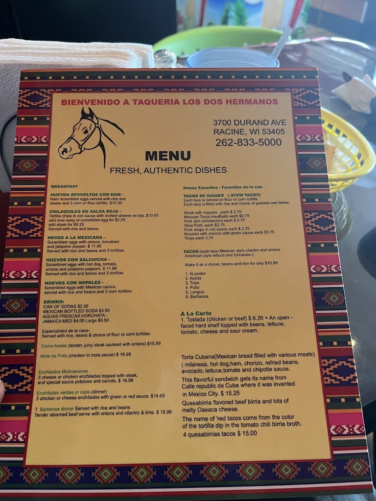 If you want authentic Mexican food, this is the best we've had in Racine. It's a small restaurant with booths and tables. They accept reservations but aren't required. There is handicap parking right outside the door. The food is excellent and the wait staff is friendly and efficient without hovering. They offer dine-in, carryout, and delivery options. They offer Breakfast, Lunch, and dinner. Their hour vary, some days closing at 3pm and others 9pm. We will recommend this restaurant to family and friends and we'll definitely be back.