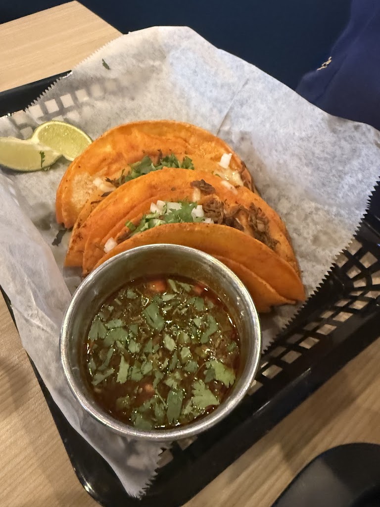 This is a wonderful place where you can enjoy delicious Mexican tacos. The quesabirria tacos were my favorite, especially because the broth that comes with them has such a rich and flavorful taste. On top of that, the cozy décor makes the whole experience even more enjoyable.