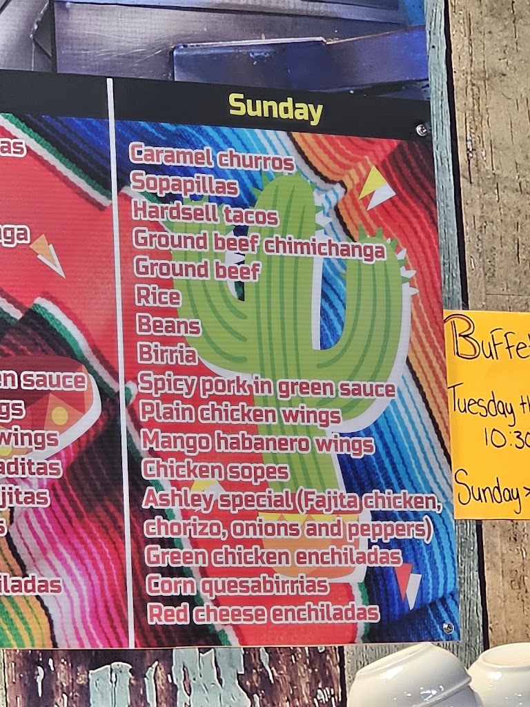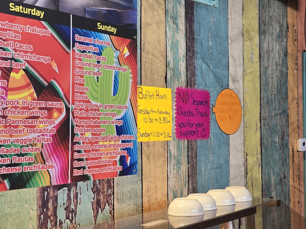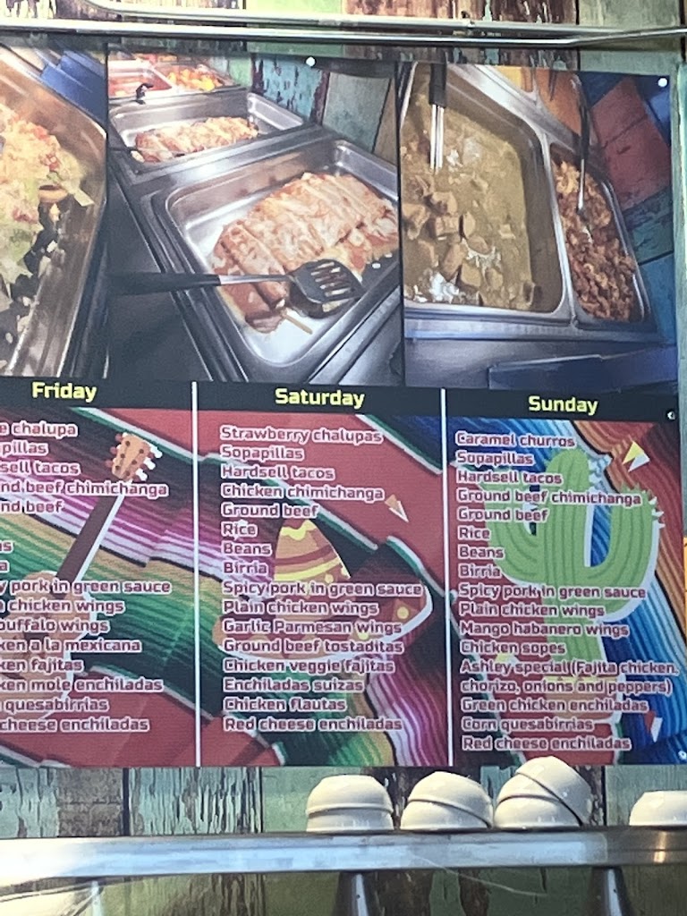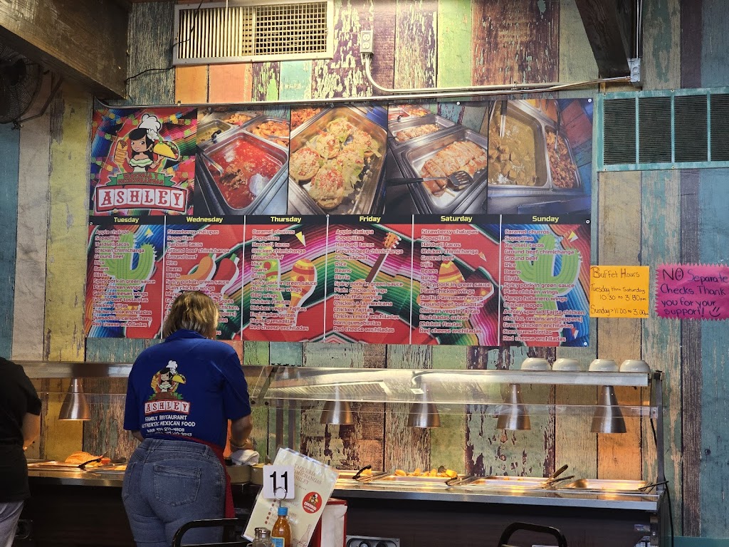 Our family of 4 went to Ashley's for lunch buffet. It was $14.50pp and 8.50 for kids under 10. They have a different assortment every day of the week, which is listed on the boards above the buffet. Our day was red sauce cheese enchiladas, green sauce chicken enchiladas, fajitas, spicy pork in green sauce, build your own tacos and tostadas among other items and cookies and flan for dessert. The buffet area did not have much food in each pan which kept everything fresh, constantly turning over from the kitchen. In the hour we were there, I must have seen the buffet area wiped down 8-10 times. It was very clean and well kept. Good selection, good price. The service was also good. We will definitely be back.