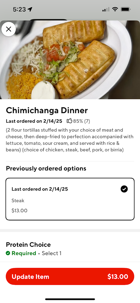 Need more options for what you want on tacos, rice had No flavor & beans out of a can👎. Don't recommend and will not be ordering from here again!!