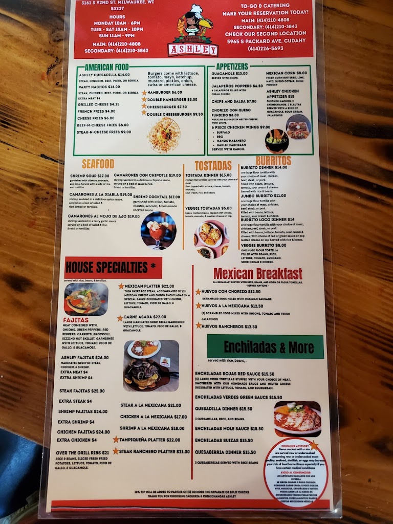 Best Mexican food in Milwaukee. The lunch buffet is unbeatable in quality and value. The wait staff is always on point and consistent. You are immediately seated with waters and 4 kinds of salsa's. I tell everyone to come eat at Taqueria Ashley.