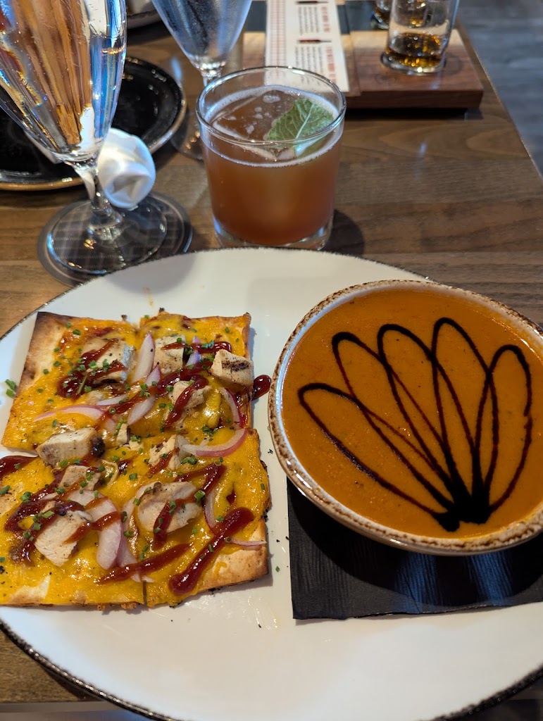 For $10 I got a lovely, crispy, flavorful flatbread and a bowl of some of the best red pepper soup I've ever had? Uh, yeah, I think I like this place. Drinks are top-tier, atmosphere is cozy and inviting, service is wonderful. Love it!