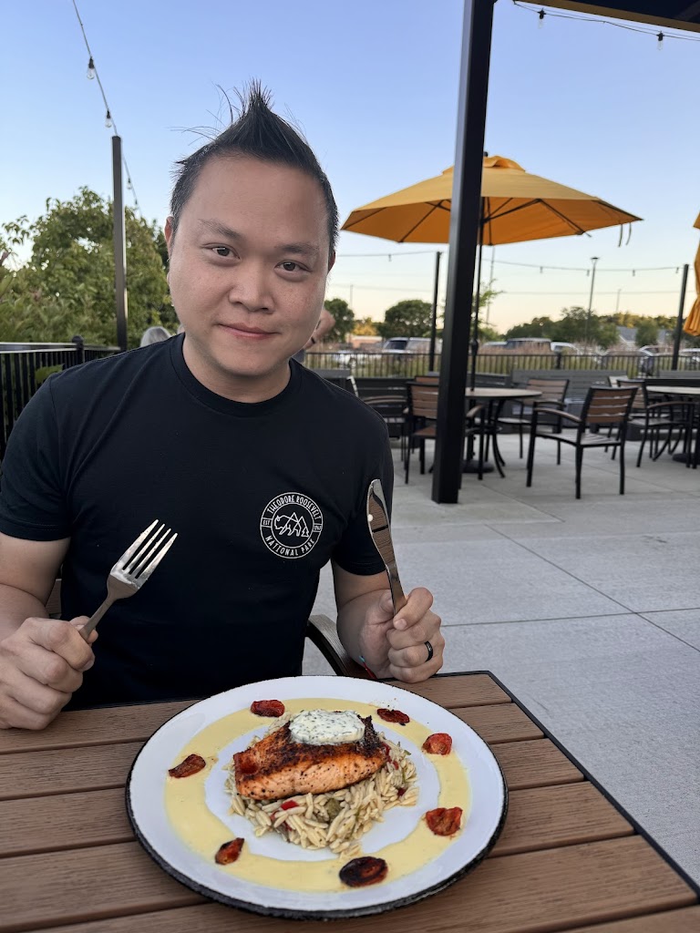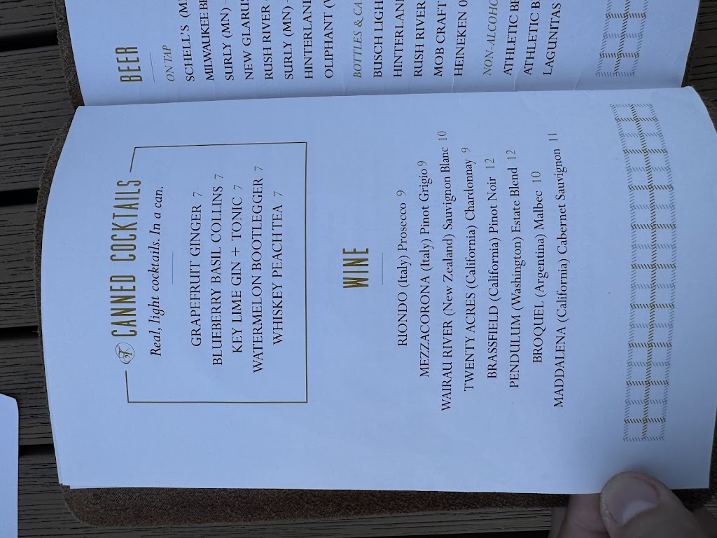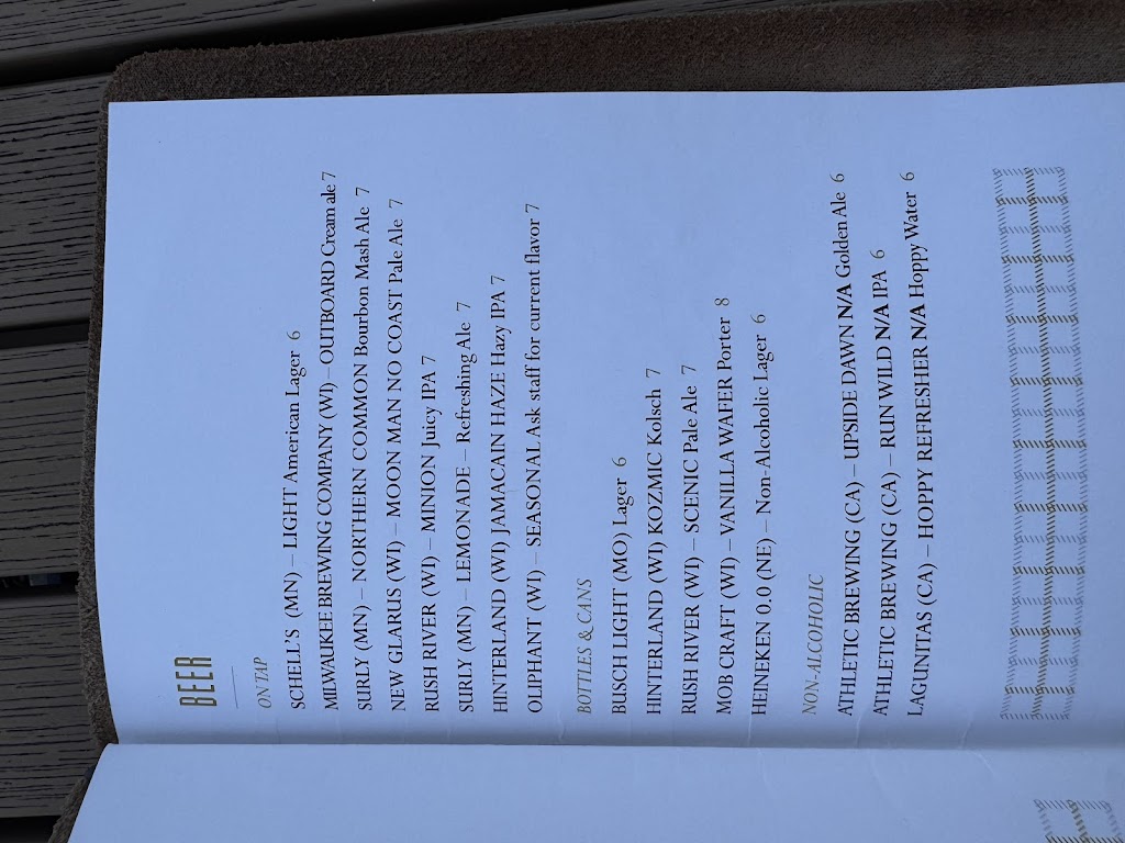 Server Alan, personal and fun. Manager John, personal and spent lots of time with us and listened, and gave us recommendations in the area. Salmon was delicious, cheese curds amazing, drinks outstanding for the price, unbelievable atmosphere amazing.