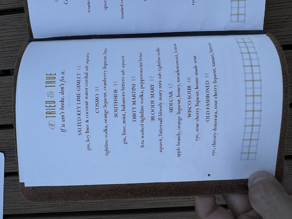 Had a bad experience with the fish fry being too soggy instead of a crispy shell and so I figured I would go a second time a while later incase that day was just an off day for the kitchen. The Fish fry was still strangely soggy instead of crispy and the risotto I replaced it with had this wierd sour tast to it I've never experienced with a risotto. The biggest infraction I experienced though was on their menu they claimed to have a "Wisconsin" brandy old-fashioned. I can only assume the owners must not be from Wisconsin because what I was given was not a Wisconsin old-fashioned but instead the same drink I get when I order a regular brandy old-fashioned in California, New Orleans, and even New York. It's one thing to save money by making a regular old-fashioned, but atleast if you're going to do that then don't advertise it's a Wisconsin old-fashioned. Also when I bring it up to the waiter, either fix it or take it off my bill instead of nothing at all.